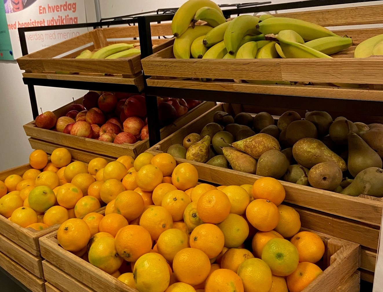 Langs en væg i kantinen står kasser med æbler til kommunens medarbejdere. I vintersæsonen booster Erik Jensen deres sundhed med friskpresset juice.