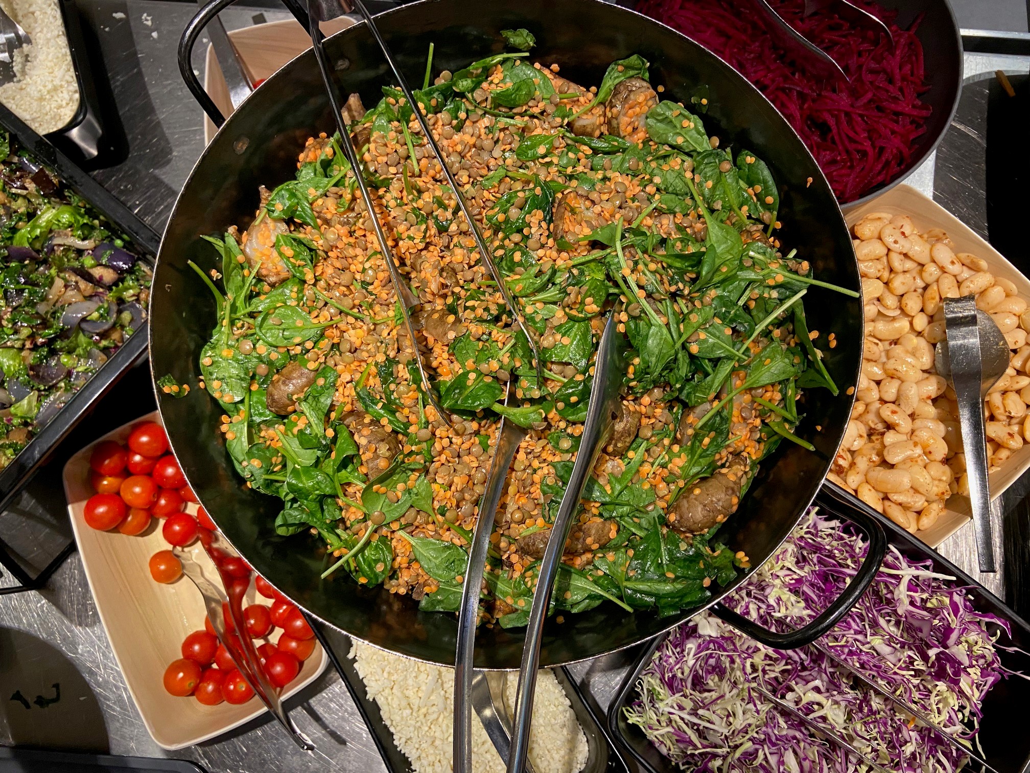 ”Vi reducerer madspild ved at portionsanrette i skåle. Det gør, at folk ikke øser for store mængder op, som ender i skraldespanden. Ved at få retten i en mindre portion undgår den enkelte medarbejder at overspise og sidde dvask på kontoret efter frokosten,” tilføjer Erik Jensen.