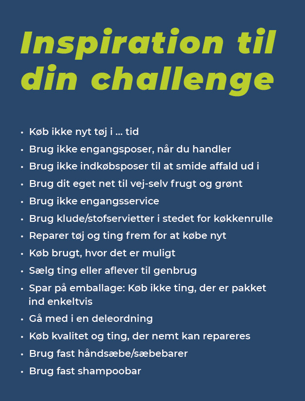 ”Giver man sig selv en challenge, bør der være en mental udvej. Har du besluttet at undgå at købe materielle ting i en måned, kan du f.eks. sige: ’En dag i denne måned må jeg skeje ud med et køb. Herved får du nemmere ved at overholde principperne resten af tiden,” fortæller forskeren.
