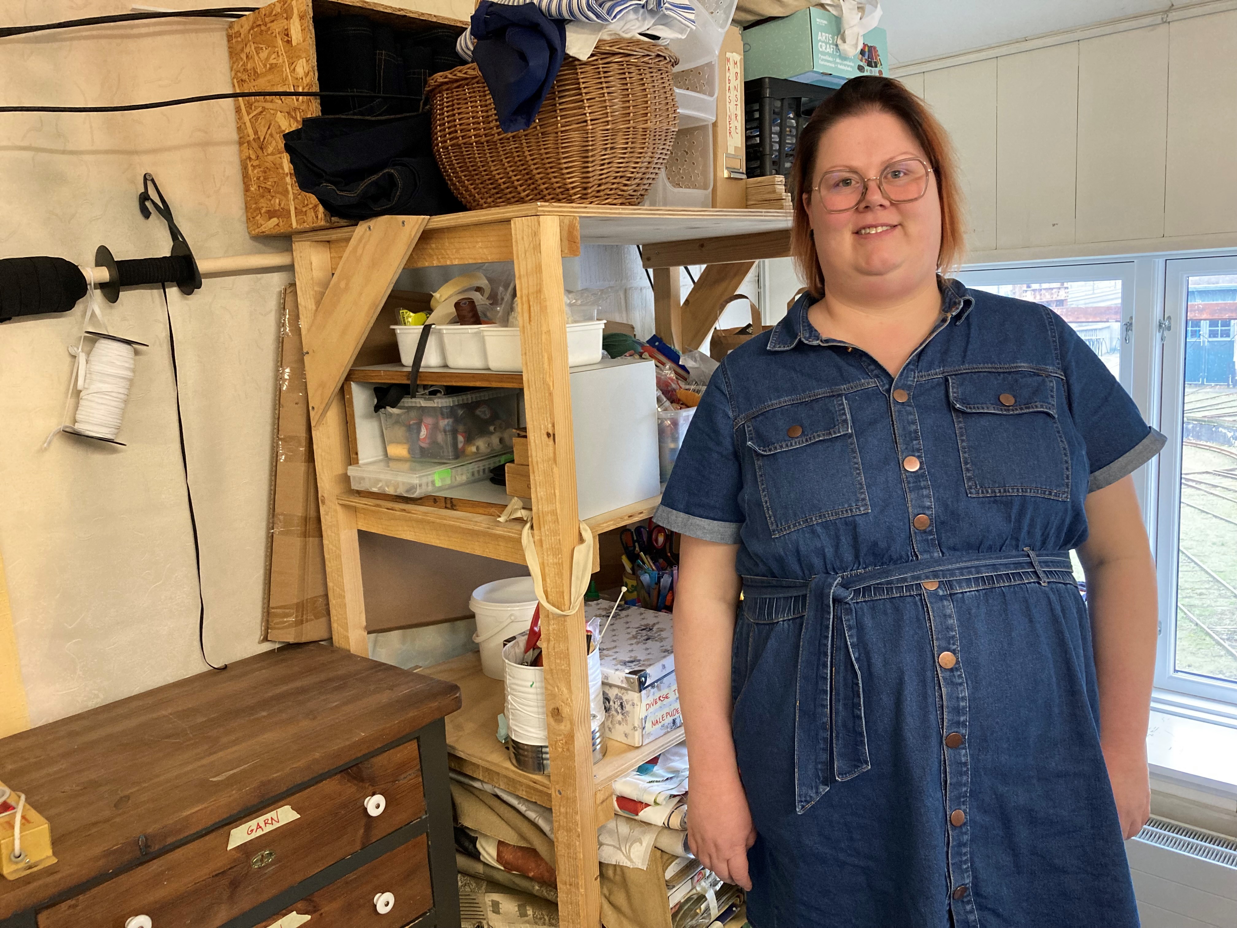 Sammen med datteren gik hun på materialejagt i INSP’s kreahjørne, ’ReDesign’. Besøgende kan her gratis tage af det genbrugsstof, som lokale har doneret til stedet.