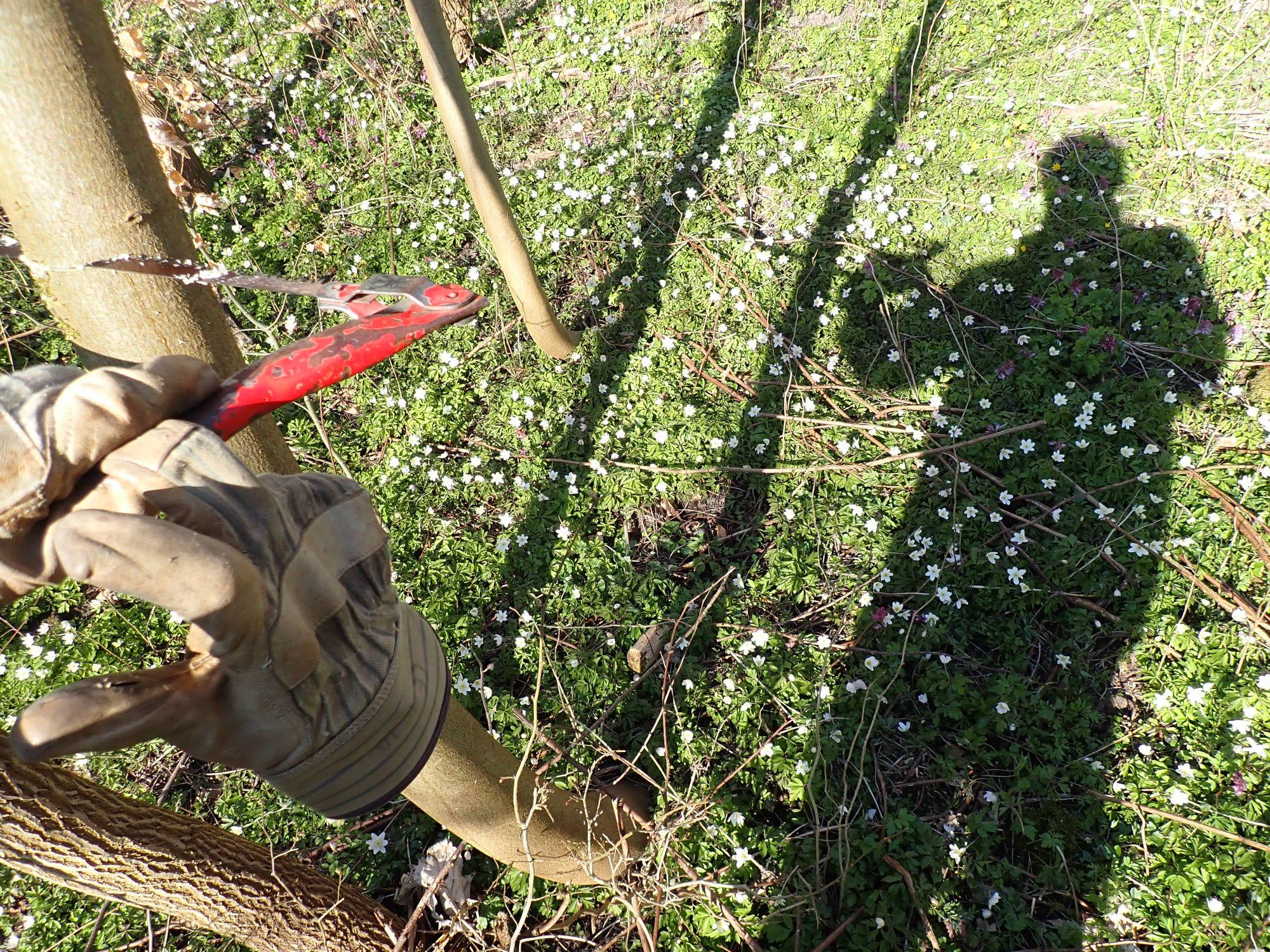 Stævningen giver et boost til forårsblomsterne. Du kan tydeligt se forskel i blomsterfloret i den lysåbne stævningsskov og de mørkere dele af skoven.