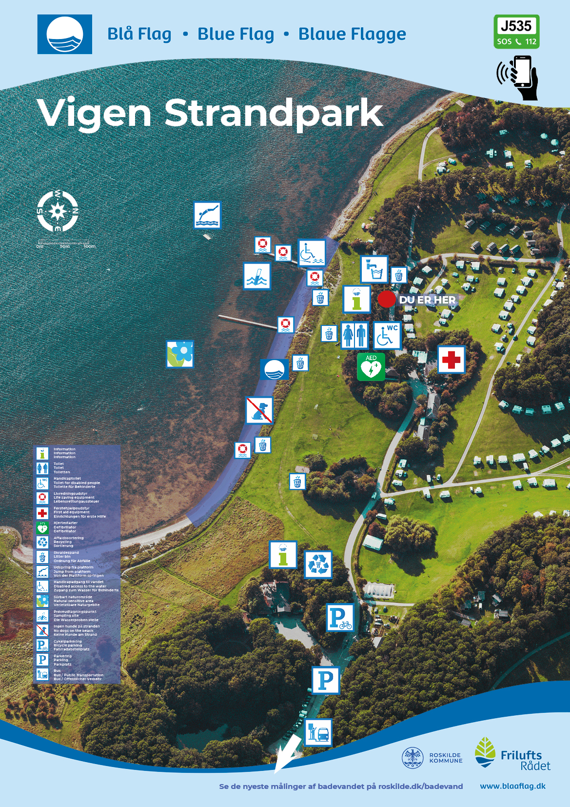 Vigen Strandpark er en Blå Flag strand. Det betyder meget mere end en god vandkvalitet. Flaget garanterer, at stranden arbejder for at sikre vores fælles natur og miljø.